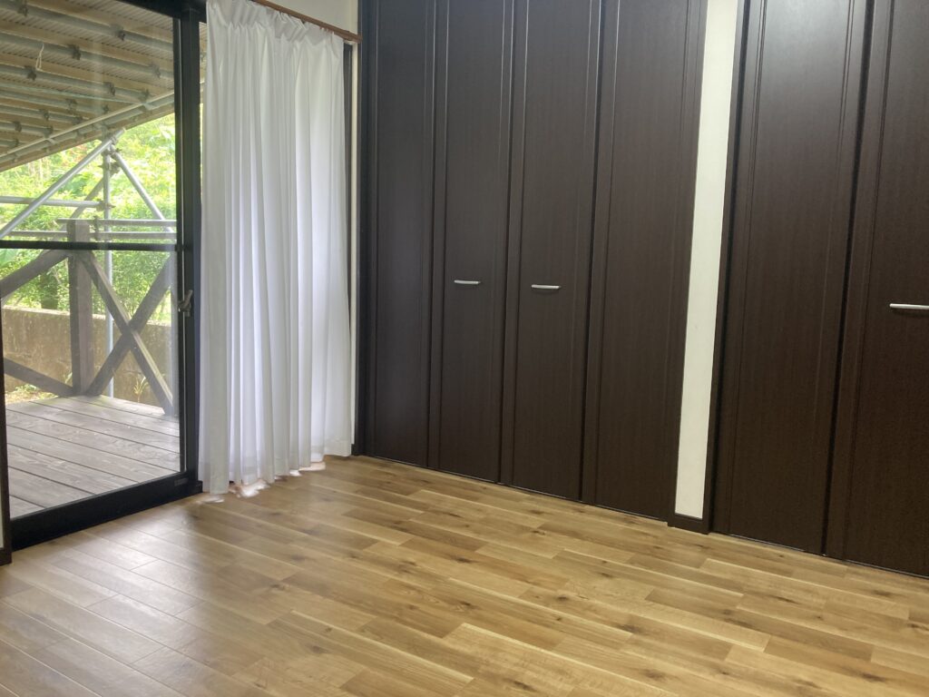 大きな窓から差し込む自然光が部屋全体を明るく照らし、開放感あふれる空間が広がります。